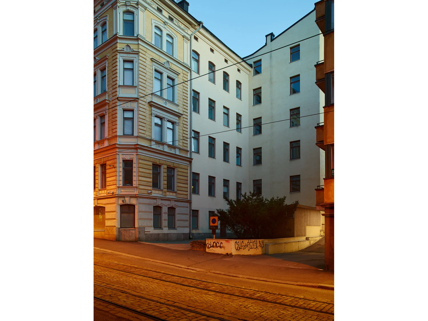 I photographed the streets of Helsinki around the time the streetlights turn on. Helsinki, like many developed cities, is bathed in artificial light. I searched the blocks for low lit areas and unusual viewpoints, where the city lights blend together with last rays of the blue evening light. The series also documents Helsinki's architecture and the changing urban environment. I wanted to photograph everyday street corners and cityscapes instead of unique architectural sights.